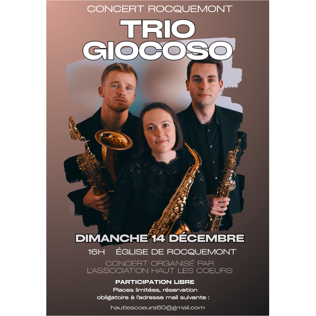 Le Trio Giocoso vous attend le dimanche 14 décembre dans l’Église de Rocquemont à 16h, pour partager une parenthèse musicale, suivie d’un moment convivial autour d’un verre !